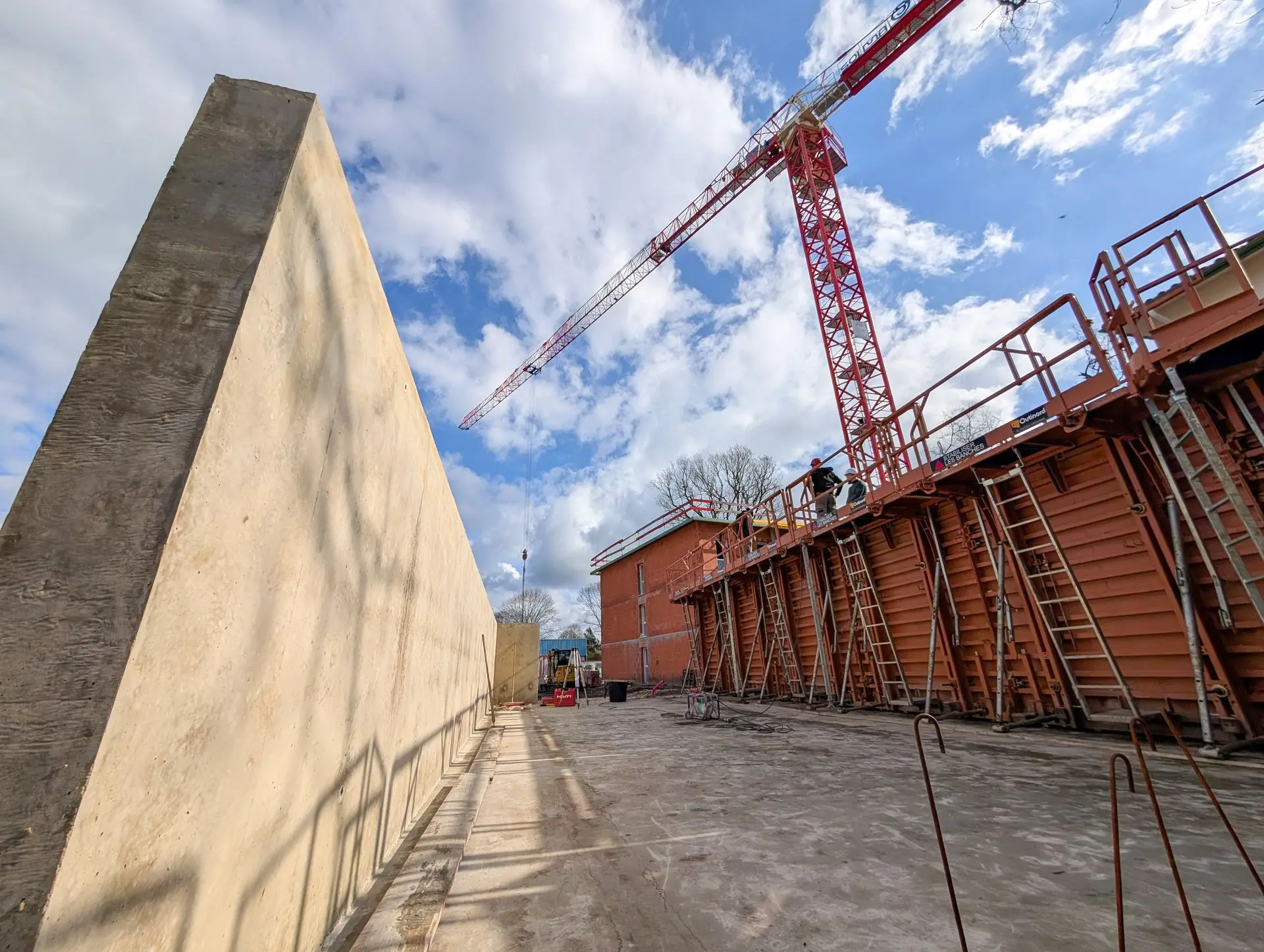 Fondations, dalles, murs, béton de propreté. Le MCC1® offre des performances mécaniques équivalentes au ciment conventionnel 42,5 — validé sur les classes C25/30 à C35/45 avec des partenaires BPE depuis 2022.