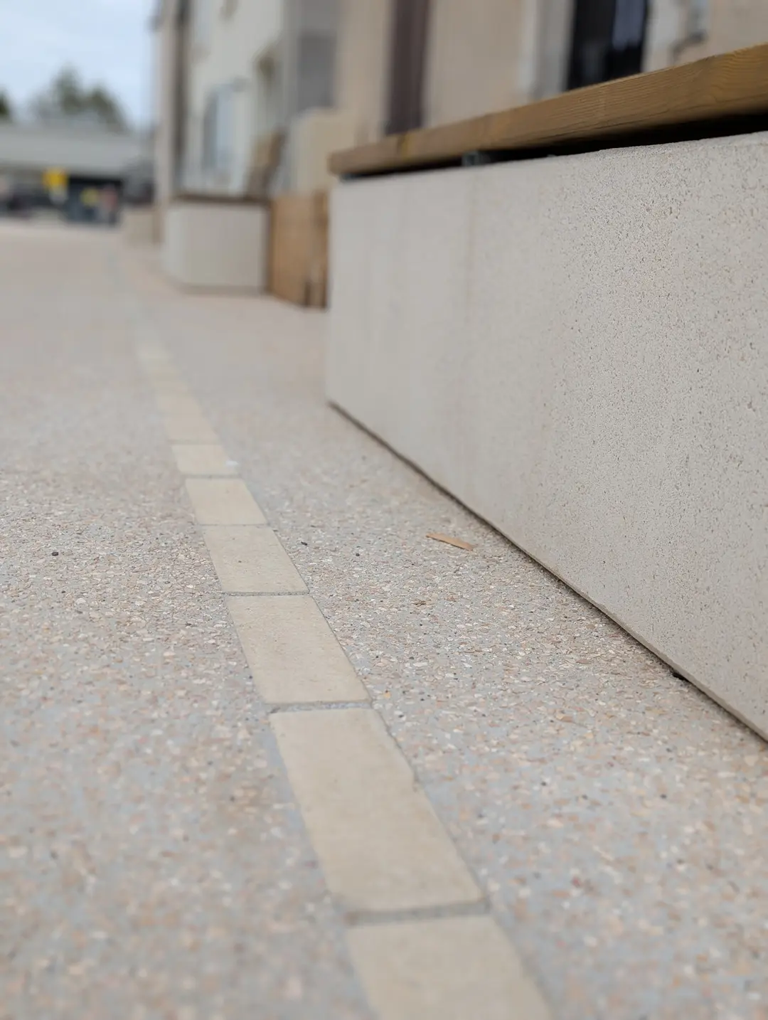 Utilisé en liseret le long du béton désactivé met en valeur les lignes du projet tout en affirmant une identité urbaine moderne et apaisée.