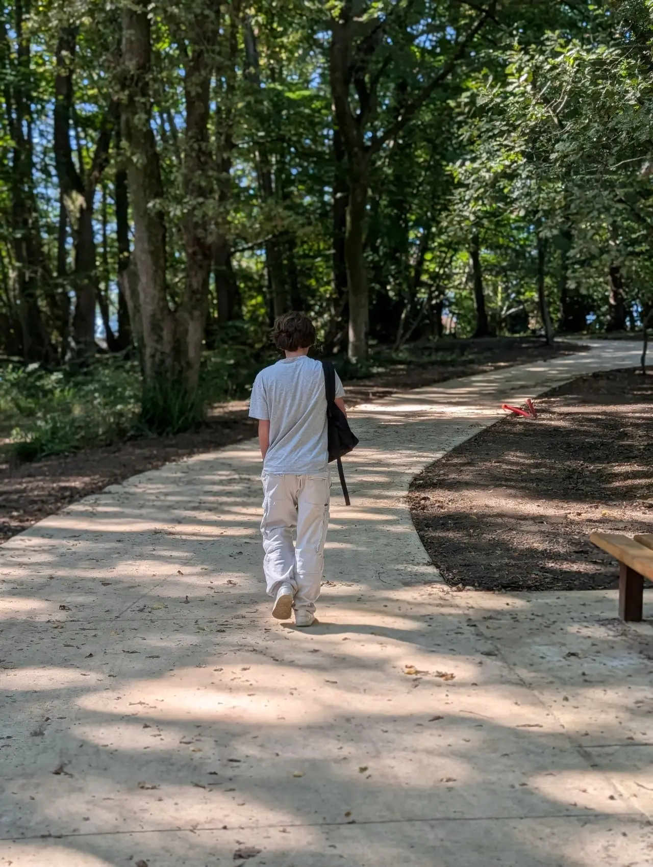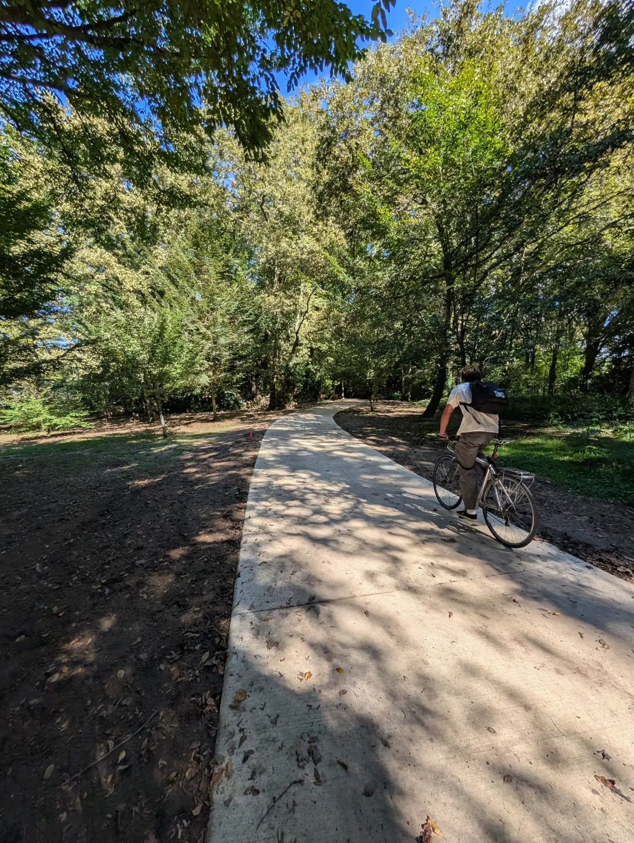 Here, between the forest and the university campus, MATERRUP has built 3 300 m² of walkways using MCC1 low-carbon circular concrete, with a brushed finish.