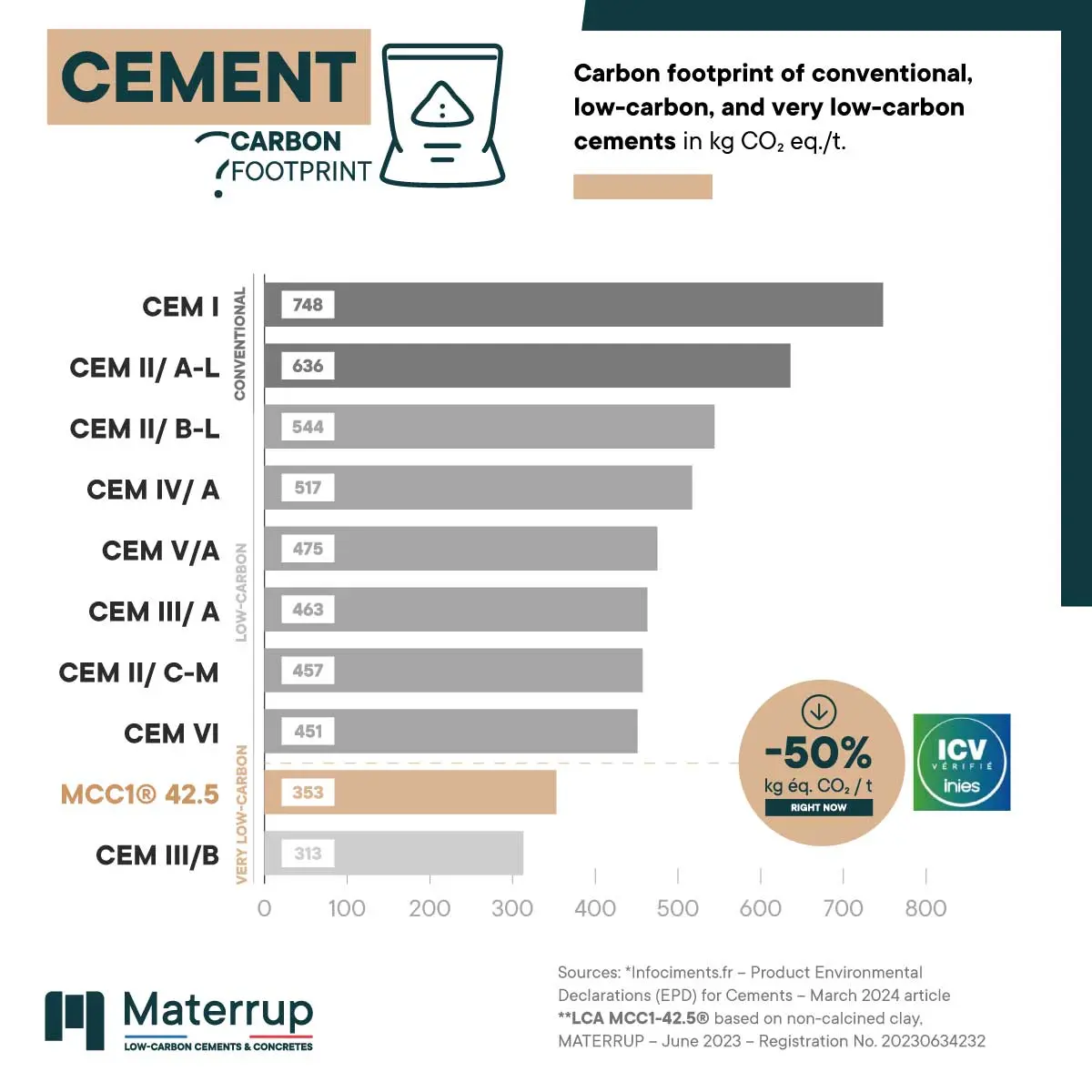 Immediately reduce the carbon footprint of your concrete by more than 50% without changing your habits thanks to our cold-activated clay technology MCC1® : By replacing your traditional cement and concrete with Materrup solutions, you instantly achieve a 50% carbon reduction!