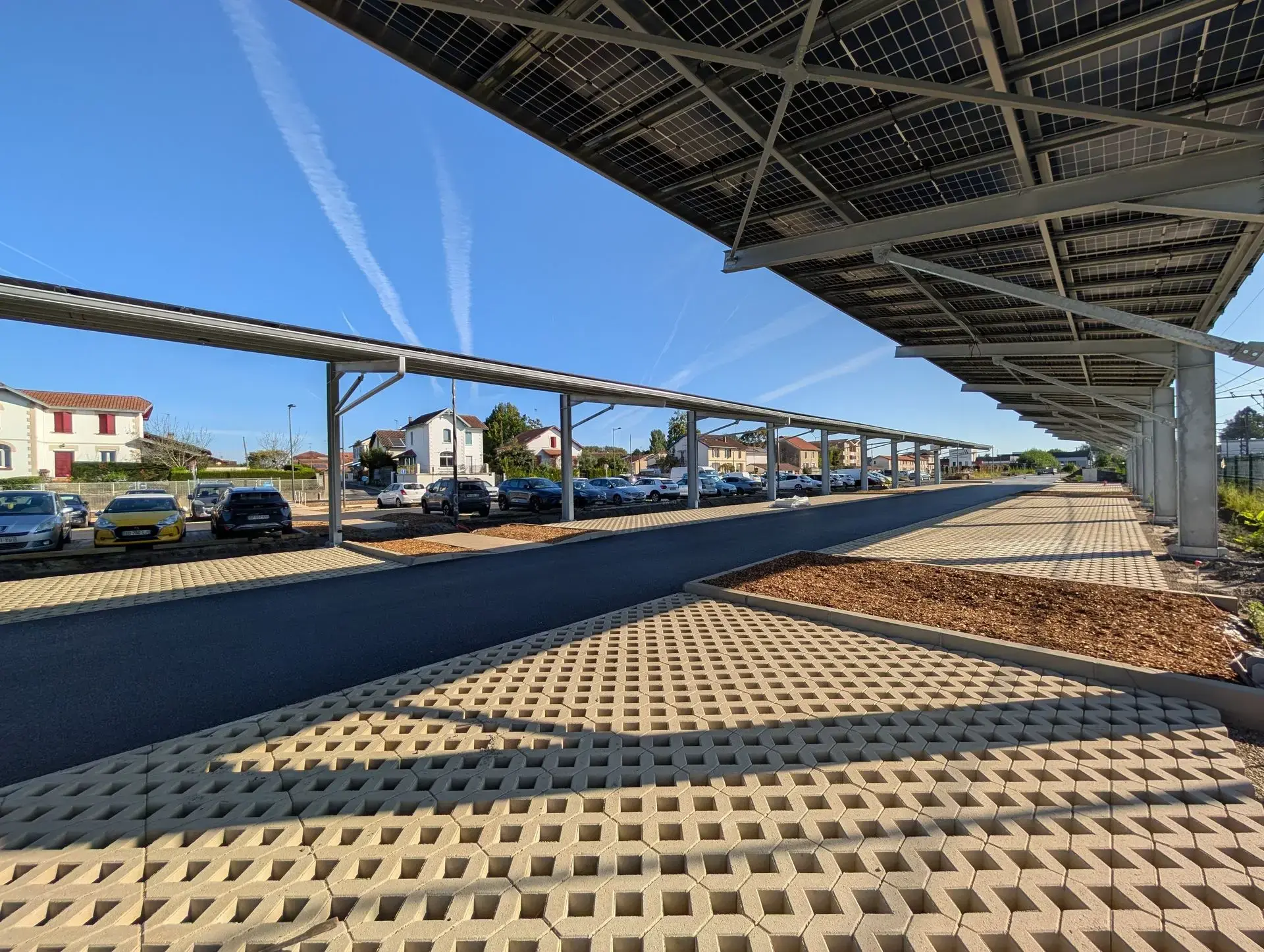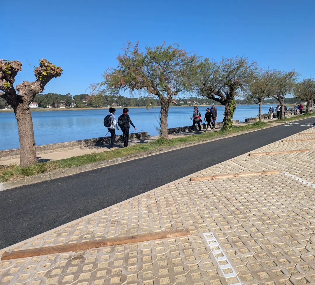 Cours d'école rafraichissantes, revitalisation et renaturation de cœurs de ville, végétalisation de stationnement, aménagement d'oasis de covoiturage, revêtements d'espaces de vie drainants, pistes cyclables sobres et perméables... nous vous accompagnons !